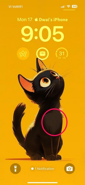 2.Şimdi,Boş bir alana dokunun ve tutunKilit ekranında.