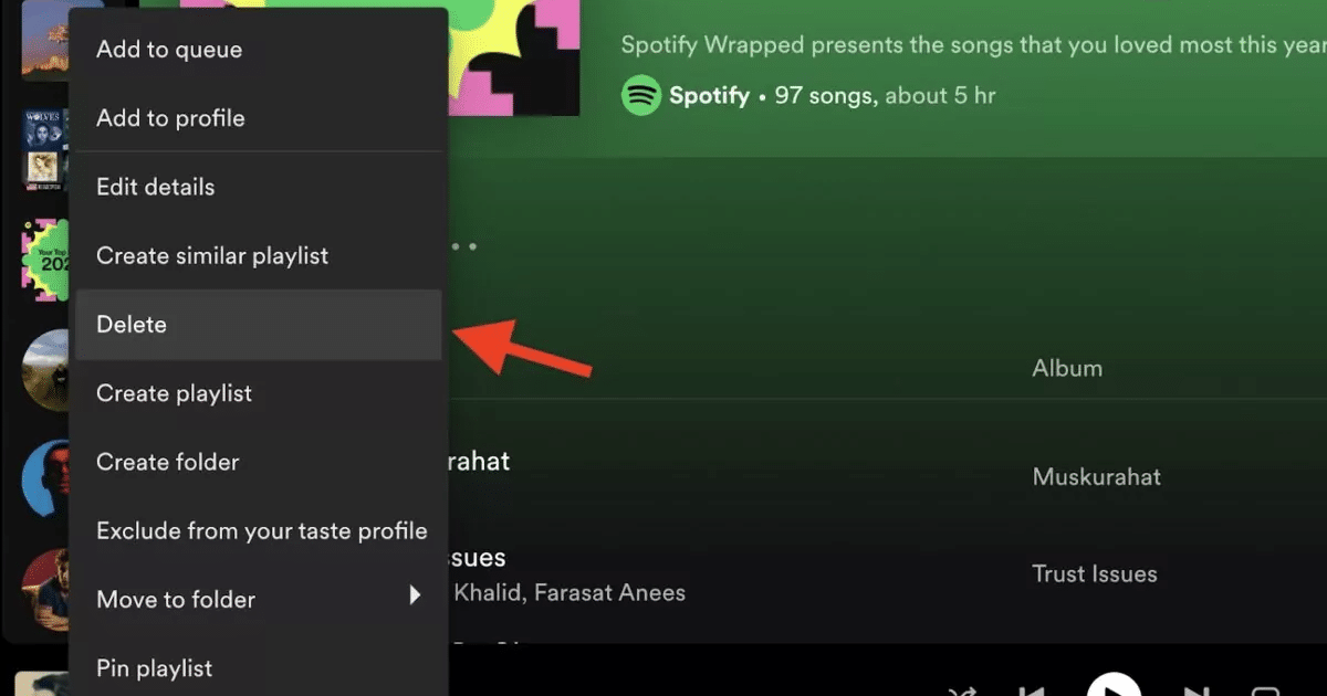 - Çalma listelerinize göz atın ve silmek istediğiniz kişiye sağ tıklayın.