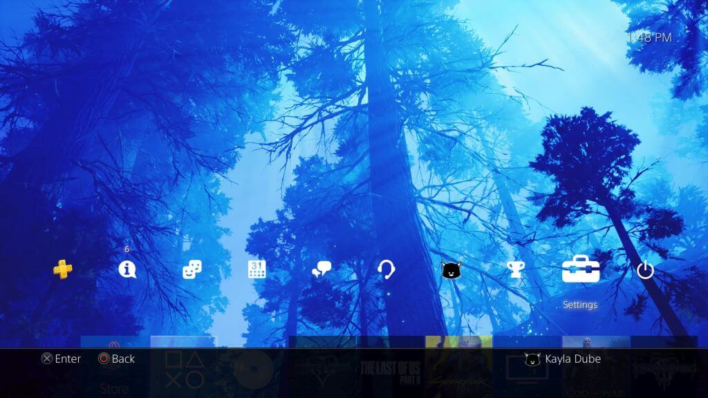- PS4'ünüzün ana ekranından, işlevler menüsünü açmak için D-Pad veya analog joystick ile yukarı hareket edin. Ardından, sonuna kadar kaydırın ve seçinAyarlar.