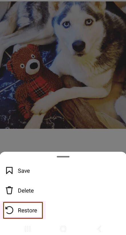 - Burada, son 30 gün içinde sildiğiniz tüm medyayı bulacaksınız. Geri yüklemek istediğiniz fotoğrafı bulun ve seçmek için dokunun.