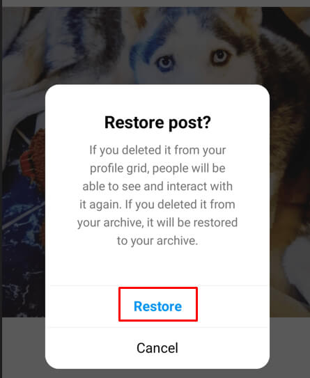 Tebrikler! Silinen fotoğrafı geri yüklemeyi başardınız ve tekrar yüklemeniz gerekmeyecek. Ancak, Instagram onları silmeden önce sildiğiniz fotoğrafları geri yüklemek için sadece 30 gününüz olduğunu unutmayın.