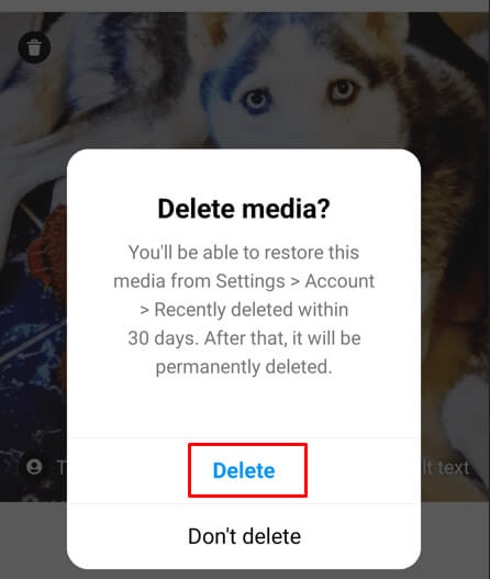 - Instagram sizden resmi silmek istediğinizi onaylamanızı isteyecektir. Anlaşmayı mühürlemek için Sil.