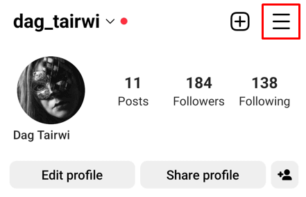 - Instagram profilinizdeki Hamburger menüsüne dokunun. Ekranın sağ üst köşesinde bulunur.
