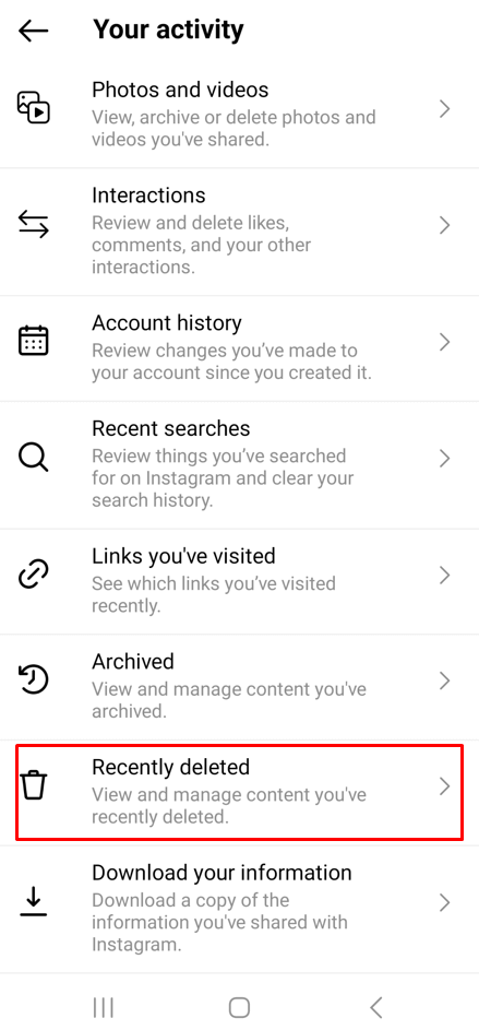 - Bulana kadar aşağı kaydırınSon zamanlarda silindi. Bu seçeneğe dokunun.