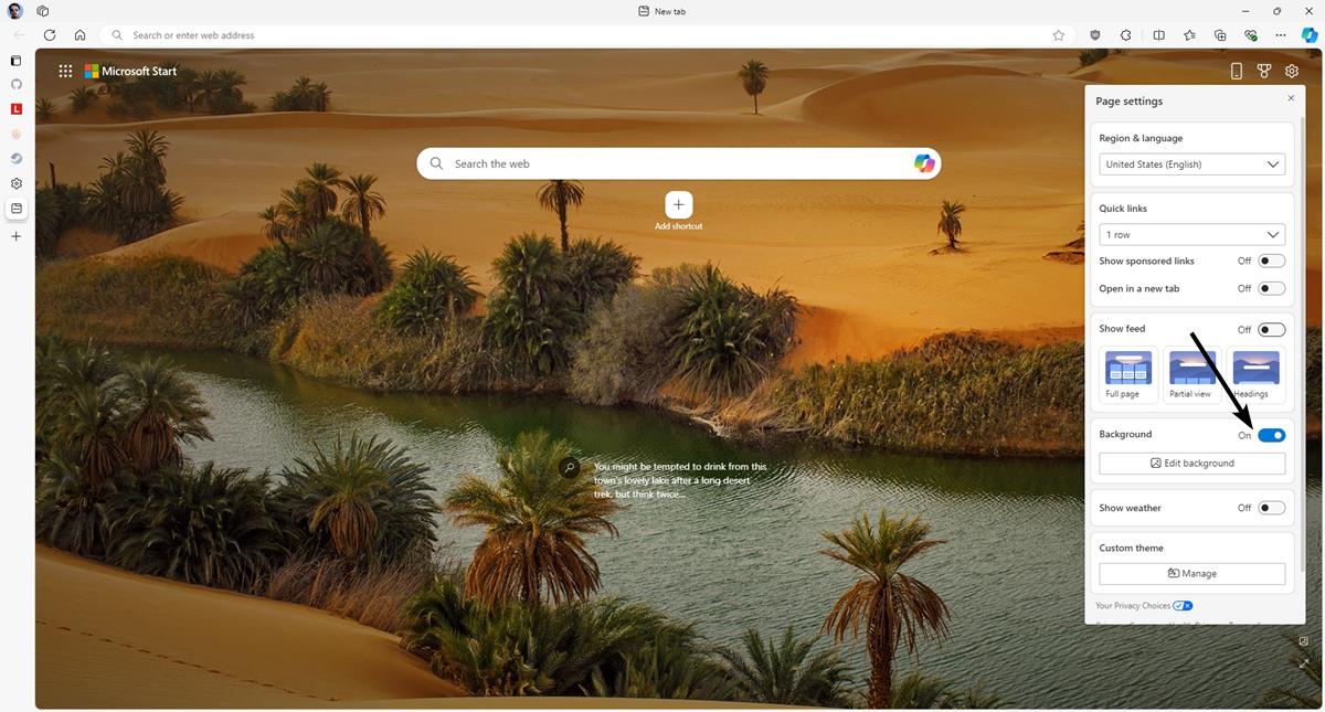 Microsoft Edge'deki arka planı nasıl değiştirir veya kaldırılır