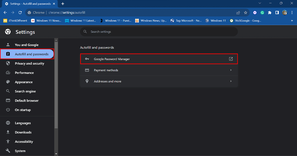 - TıklayınOtomatik doldurma ve şifrelerve "Google Şifre Yöneticisi" ayar.