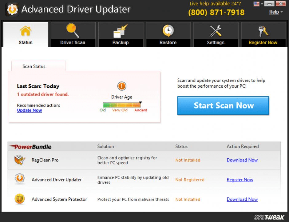 2. Adım: Programı çalıştırın ve “Şimdi Tarama” yı tıklayın. Gelişmiş Sürücü Güncelleyici donanımınızı algılayacak ve yeni sürücü güncellemeleri arayacaktır.