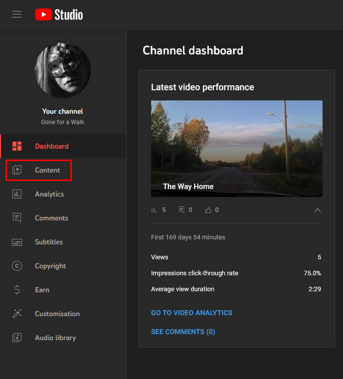 - YouTube Stüdyosu'na gidin. YouTube profil resminize veyadoğrudan bağlantı.