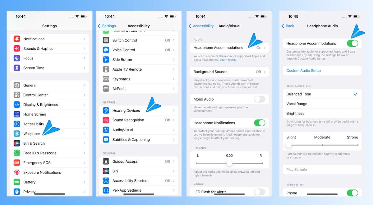 - Ayar uygulamasını açın, erişilebilirliğe dokunun ve işitme bölümüne gidin.
