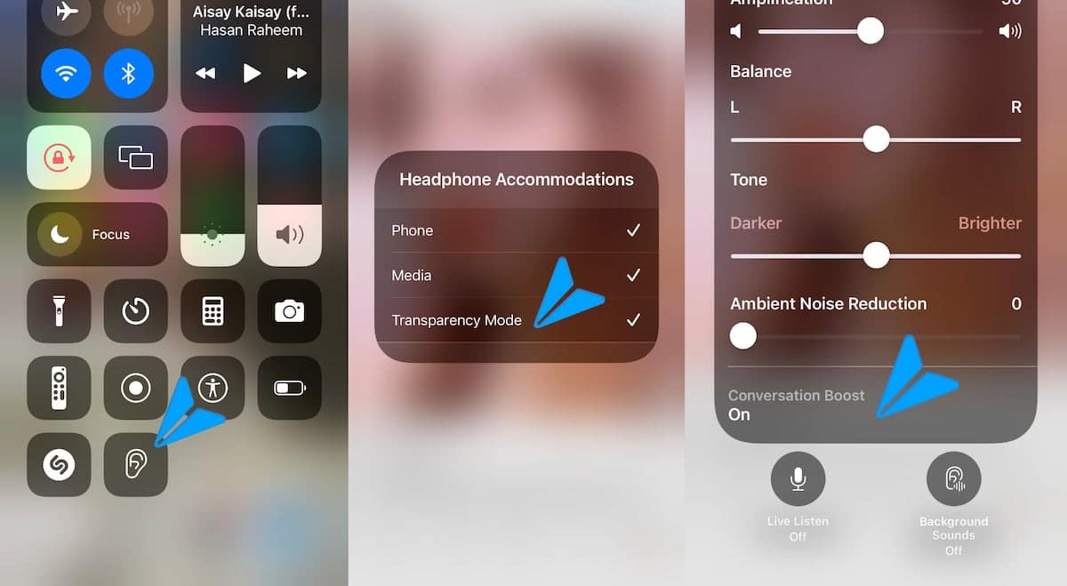 Yukarıda belirtilen adımları tamamladıktan sonra, AirPod'larınızı kulaklarınıza yerleştirin ve konuşma artışını etkinleştirmek veya devre dışı bırakmak için listelenen adımları izleyin.