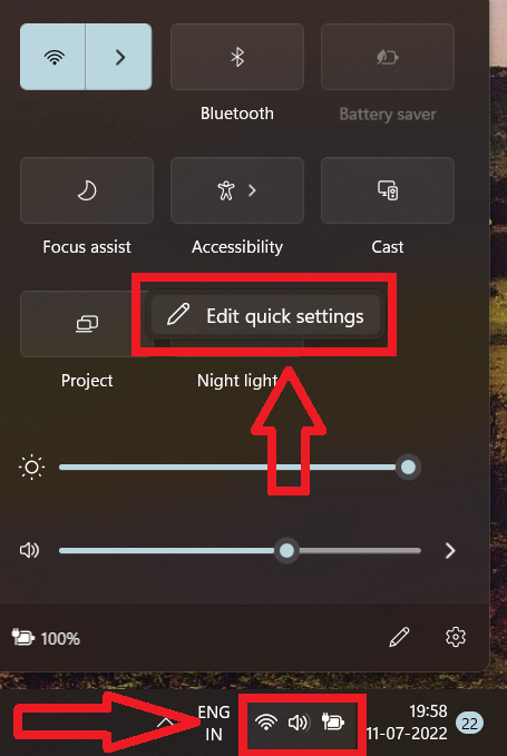 1.İlk olarak, sağ alt bildirim alanından, ses seviyesine, bataryaya veya ağ simgesine sağ tıklayın. Ayrıca kullanabilirsinizWindows+Aerişmek için kısayolHızlı Ayarlarcihazınızın.