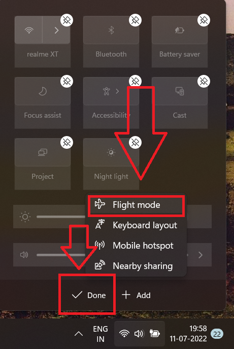 3.Daha sonra sağ tıklayınEklemekve seçUçak moduonu eklemek içinHızlı Ayarlarmenü.