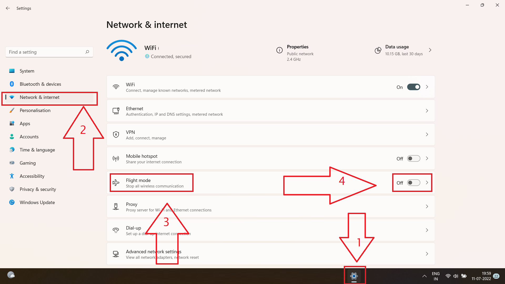 Evet, Windows 11'de Uçak Modunu Açma/Kapatma Uçağı bu kadar basittir.