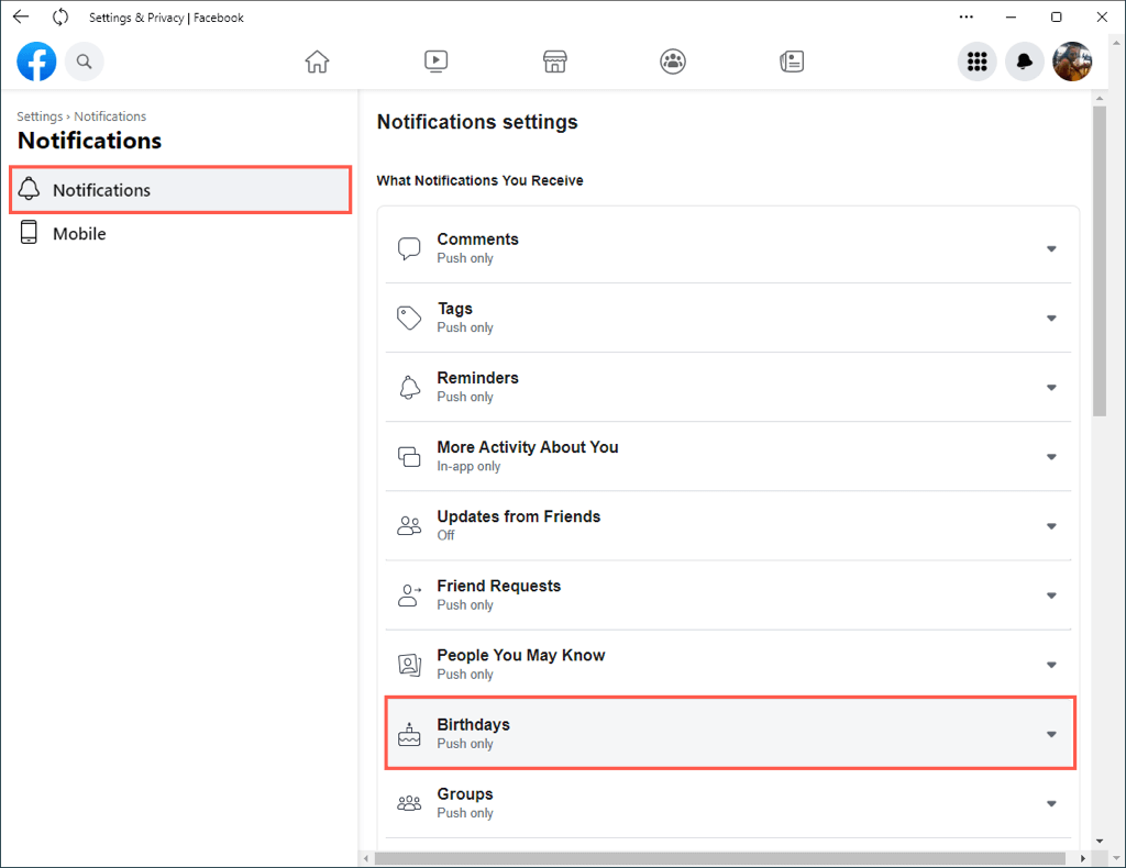 Windows'ta Facebook masaüstü uygulamasını kullanıyorsanız, Web'e benzer şekilde doğum günü bildirimlerini düzenleyebilirsiniz. Bu yazı itibariyle macOS için resmi bir Facebook masaüstü uygulaması yok.