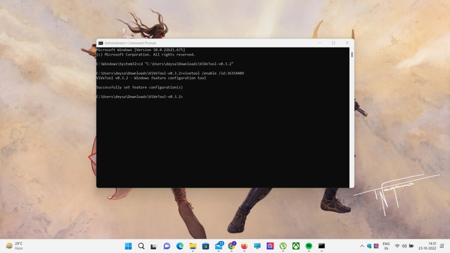 vivetool /enable /id:36354489