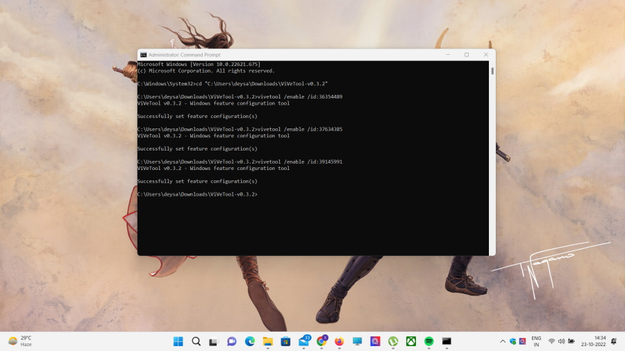 vivetool /enable /id:37634385