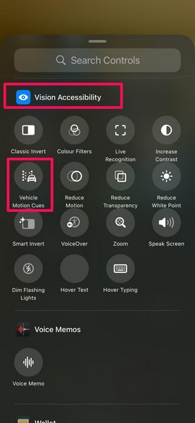 Bununla birlikte, iOS 18'deki iPhone'unuzdaki kontrol merkezine araç hareket ipuçları kontrolünü eklemek için aşağıdaki adımlara göz atın: