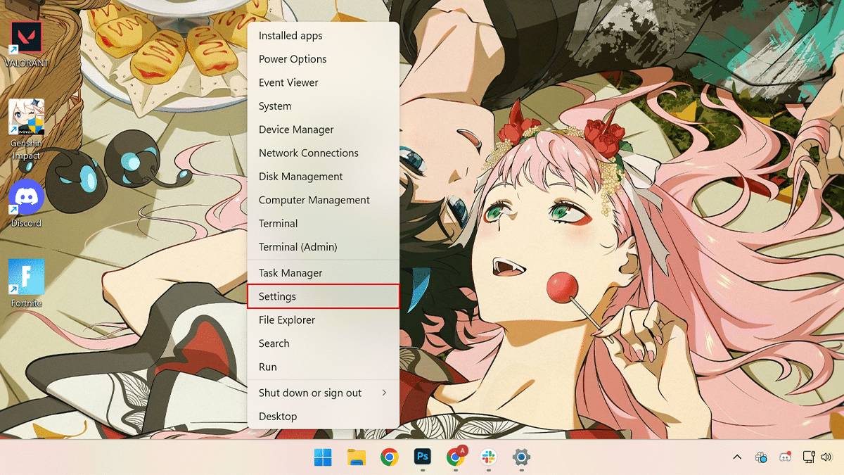 - Sağ tıklayınBaşlangıç> üzerine tıklayınAyarlarseçenek.
