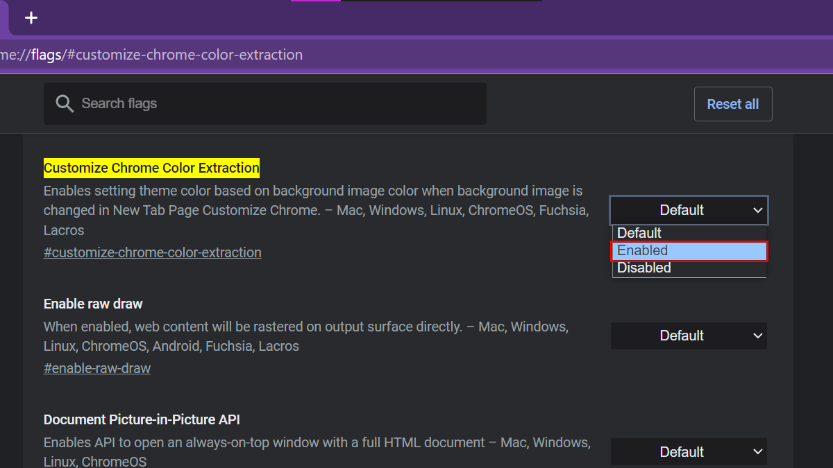 - Kullanın"Krom renk çıkarmayı özelleştir"Sağdaki açılır menü>Etkinleştirilmişseçenek.