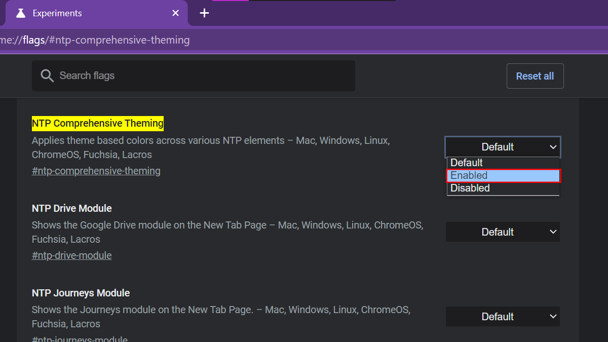 - Kullanın"NTP Kapsamlı Tema"Sağdaki açılır menü>Etkinleştirilmişseçenek.