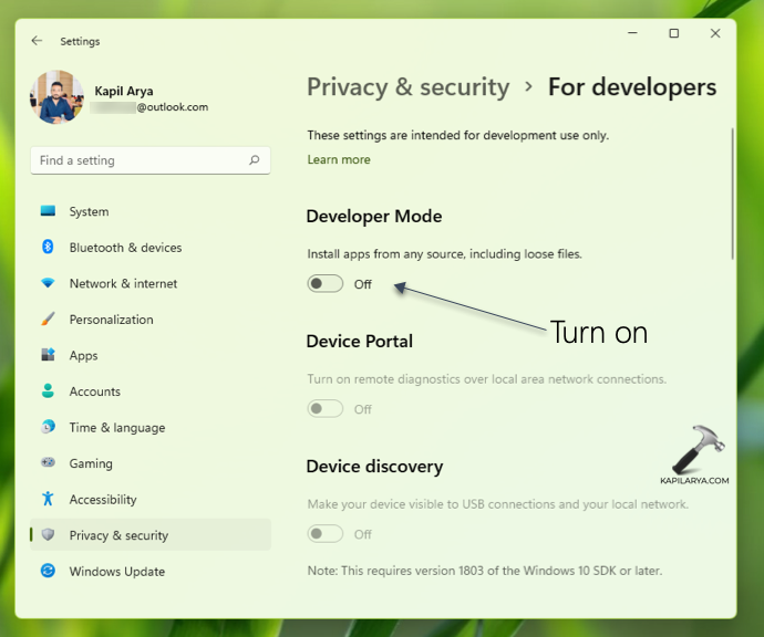 Geliştirici modunu etkinleştirdiğinizde, Windows 11'iniz herhangi bir kaynaktan uygulamaları yükleyebilir. Sadece gerektiğinde geliştirici modunu etkinleştirmelisiniz. Çünkü geliştirici modu altında, dediğim gibi herhangi bir kaynaktan uygulamalar yükleyebilirsiniz. Bu nedenle, güvenliğinizden endişe ediyorsanız, doğrulanmamış kaynaklardan gelen uygulamalar sisteme yüklenebileceğinden ve cihazınızı ve kişisel verilerinizi güvenlik riskine maruz bırakabileceğinden, geliştirici modu etkinleştirdiğinizde dikkatli olun.