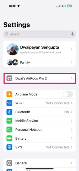 2. AirPods adınıza dokununAyarlar sayfasının üstünde.