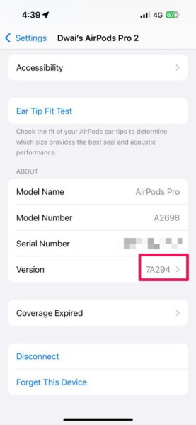 Tahmin edebileceğiniz gibi, iPhone'unuzdaki AirPods Pro 2 modeliniz için yeni kafa jestleri özelliğini elde etmek için AirPod'larınızın ürün yazılımı sürümünün 7A294 olduğundan emin olmalısınız.