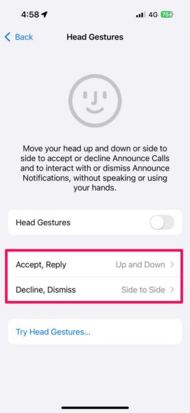 Şimdi, iPhone'unuzdaki Ayarlar uygulaması aracılığıyla AirPods Pro 2'niz için Head Jestes özelliğini etkinleştirme veya devre dışı bırakmanın yanı sıra, yeni özelliği de deneyebilir ve tercihinize uygun olarak biraz özelleştirebilirsiniz.