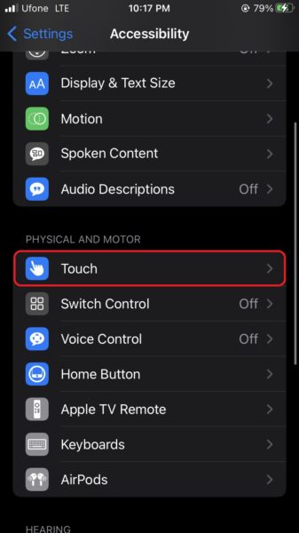 - Aşağı kaydırın ve dokununErişilebilirlik.