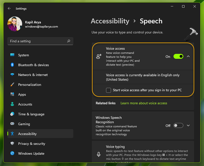 Sesli erişim, sesinizi kullanarak Windows 11 ve yazar metninizi kontrol etmenizi sağlayan bir özelliktir. Uygulamalar arasında açmak ve geçiş yapmak, Web'e göz atmak ve posta okuma ve yazma postası için Ses Access özelliğini kullanabilirsiniz. Bu özellik, konuşmayı doğru bir şekilde tanımak için modern, cihaz içi konuşma tanımadan yararlanır ve internet bağlantısı olmadan desteklenir. Ancak, bu özelliği ayarlamak için İnternet bağlantısına ihtiyacınız olacak. Bu kılavuzda, Windows 11'de sesli erişimin nasıl etkinleştirileceğini göreceğiz.
