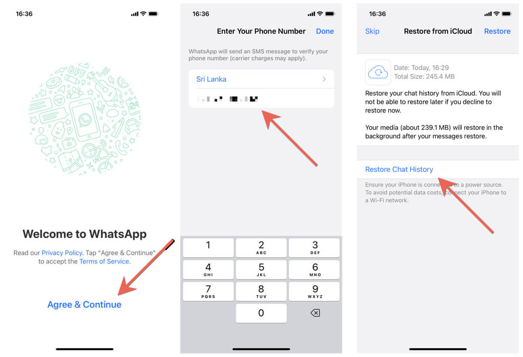 - WhatsApp yedeklemenizi geri yüklemeyi seçin. Eski telefonunuzla aynı Apple Kimliği veya Google hesabı ile yeni telefonunuzda oturum açmadıysanız bu seçeneği görmeyeceksiniz.
