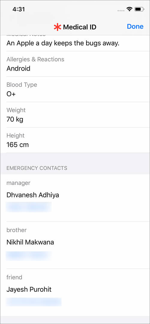 Genellikle, listenin üstündeKartımBu, kayıp iPhone'un sahibinin eş, anne, baba vb. Gibi numarası, e -posta ve diğer ayrıntılarına sahiptir. Alternatif olarak, bir bakış atabilirsiniz.KontaklarBir 'eş', 'kardeş', 'baba' vb. İle bağlantı kurup geçemeyeceğinizi listeleyin ve görün.
