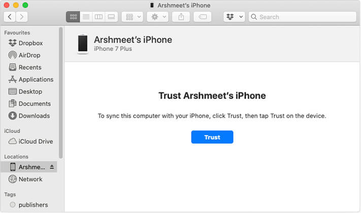 AçıkiTunesPC'de veya Finder'da Mac'te, iPhone'un adını görebileceksiniz. Çoğu insanın adını 'Arshmeet'in iPhone' gibi setleri var. Şimdi bir işaret koyabilir veya mesajı kişinin adıyla yayabilirsiniz.
