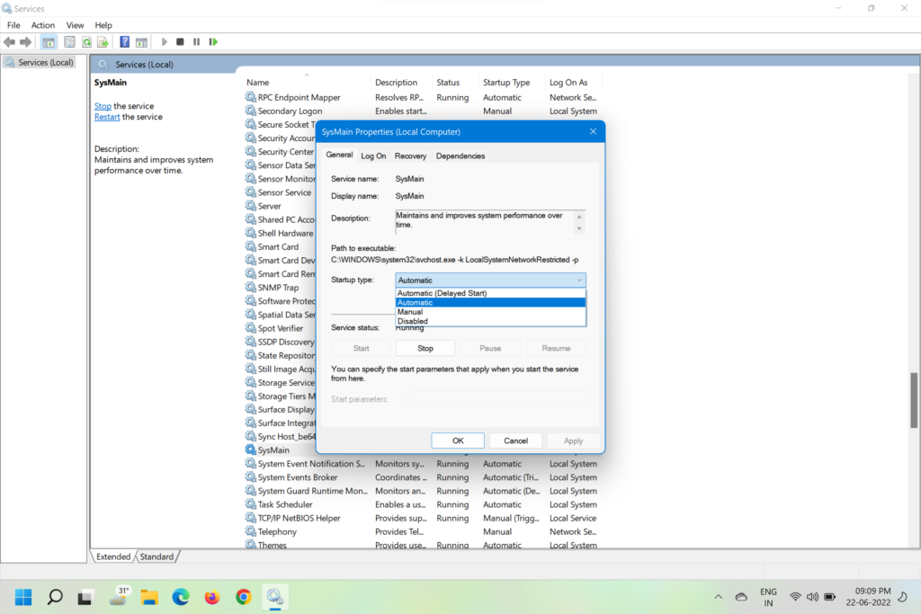 3.Bir sonraki pencerede,SysmainveyaSüper filetove üzerine çift tıklayın.
