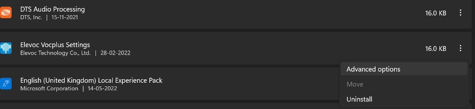 3.Ardından, uygulamanın yanındaki üç noktayı tıklayın ve seçinGelişmiş Seçeneklermenüden gelişmiş seçenekleri açmak için.