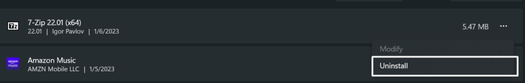 7-ZIP'nin mevcut sürümünün bazı hatalar ve aksaklıklara sahip olması mümkün olabilir, bu da bu rahatsızlıktan geçmenin nedeni budur. Bu durumda, uygulamanın güncellenmesinin mevcut sorunları düzeltip düzeltmediğini görmek için programı en son sürüme güncellemenizi öneririz. Windows 11 PC'nizdeki 7-ZIP uygulamasını güncellemek için aşağıdaki adımları izleyebilirsiniz. Uygulamayı güncellemek için, önce mevcut 7-ZIP uygulamasını PC'nizden kaldırmanız gerekir.