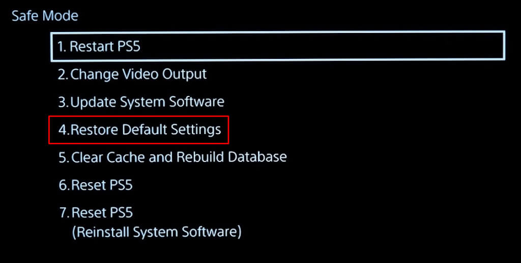 6. PS5 konsolunu güvenli modda sıfırlayın