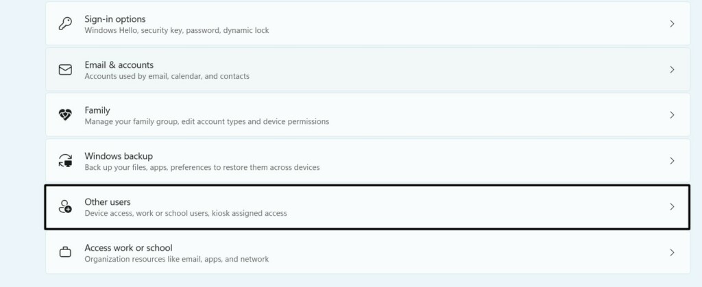 2.İçindeHesaplarPencere, altındaHesap AyarlarıBölüm, seçinDiğer kullanıcılarseçenek.