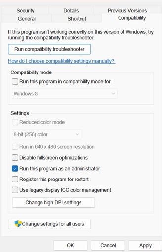 2. Adım:Özellikler penceresindeki uyumluluk sekmesine tıklayın ve bu programı yönetici olarak çalıştırmanın yanındaki kutuyu işaretleyin.