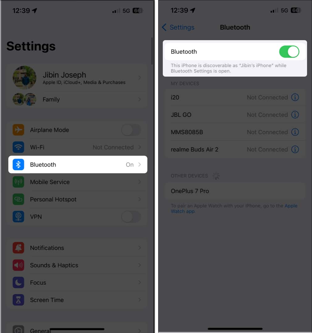 1. iPhone'un Bluetooth'un açık olduğundan emin olun