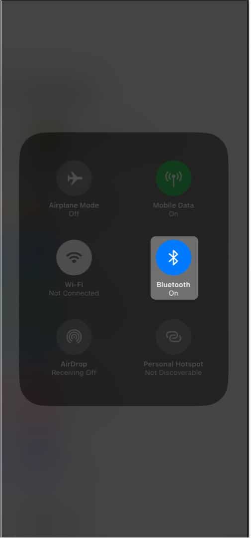 Alternatif olarak açabilirsinizKontrol merkezive bluetooth'u sağlayınFayans mavi.