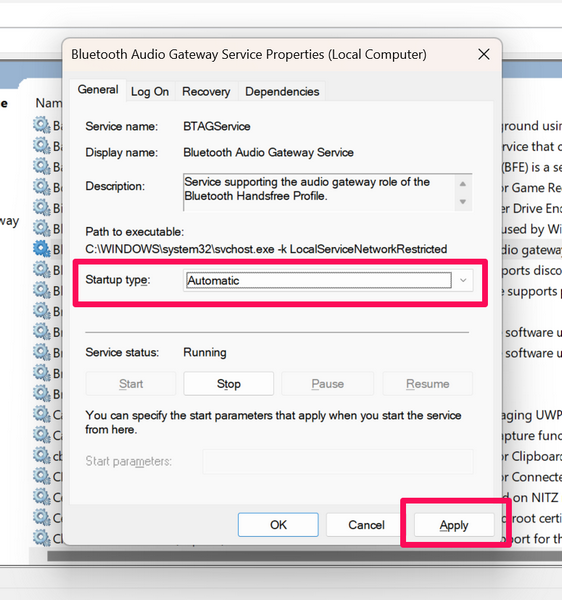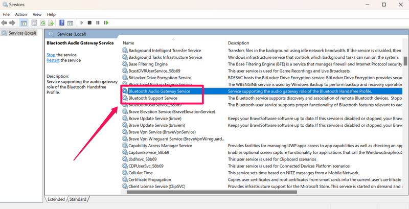 Şimdi, Windows 11 cihazınızda AirPods çalışma sorununu deneyimlediğinizde deneyebileceğiniz bir başka düzeltme, Bluetooth destek hizmetinin ve Bluetooth ses ağ geçidi hizmetinin otomatik olarak ayarlanmasını sağlamaktır. Bu hizmetler, tüm Bluetooth ses aksesuarlarının Windows 11 PC'niz veya dizüstü bilgisayarınız tarafından keşfedildiğinden ve cihaza her bağladığınızda çalıştığından emin olun.