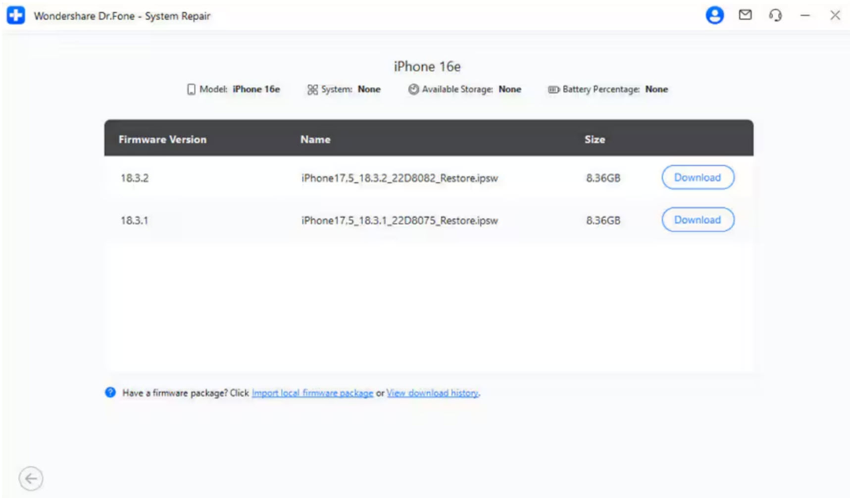 2. Adım. Dondurulmuş ekranı onarmak için iOS ürün yazılımını seçin