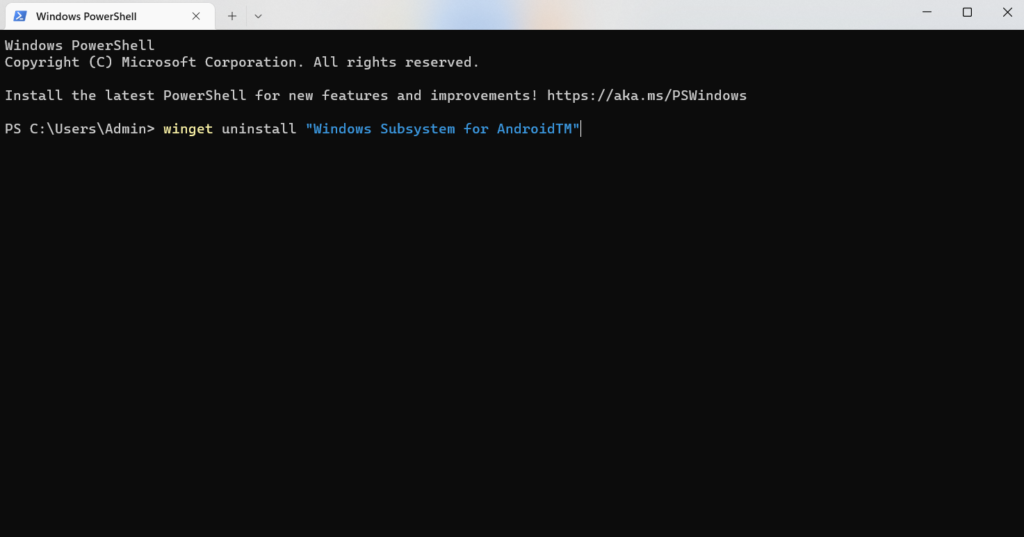 Winget kaldırma "AndroidTM için Windows Alt Sistemi"