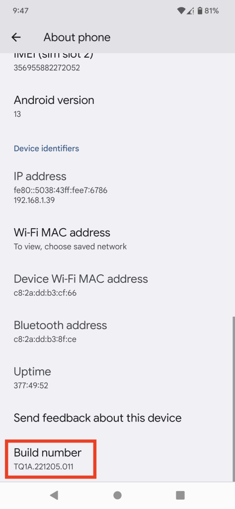 3.Geliştirici ayarlarını etkinleştirmek için yapı numarasına yaklaşık 7 kez sürekli basmaya devam edin.