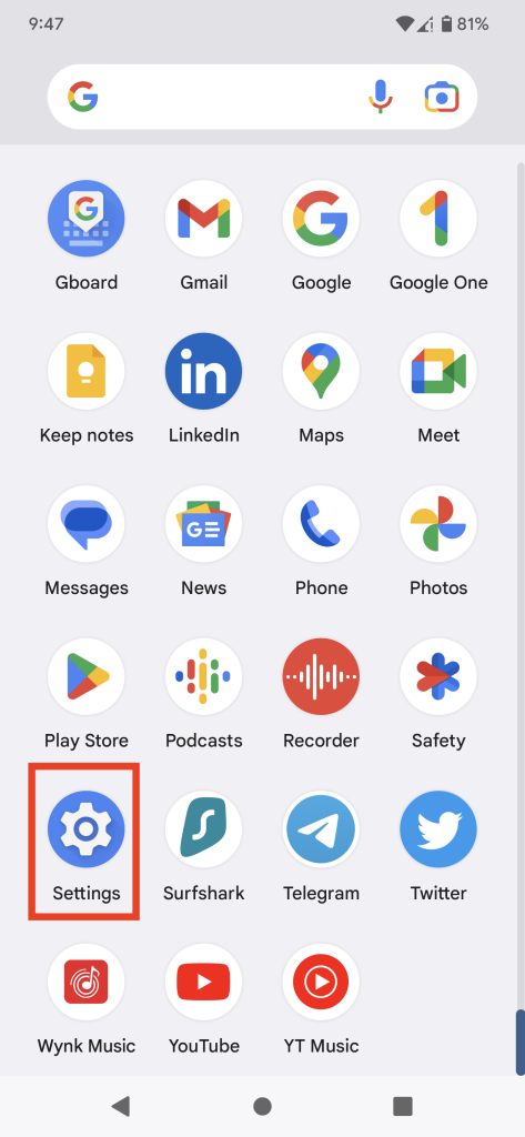 1.Telefonunuzun kilidini açın ve açınAyarlar.
