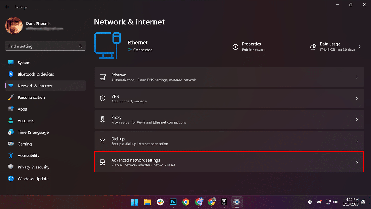 - AçıkAyarlar> Ona TıklayınAğ ve İnternet> tıklayınGelişmiş ağ Ayarlarsekme.
