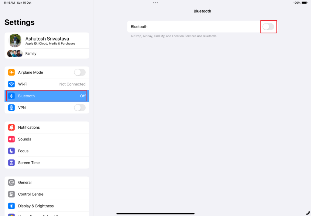 Bunu düzeltmek için, iPad'inizdeki Bluetooth hizmetlerini yeniden başlatın, bunu yaptığınızda, iPad'inize bağlı tüm Bluetooth cihazlarının geçici olarak bağlantısı kesilir.
