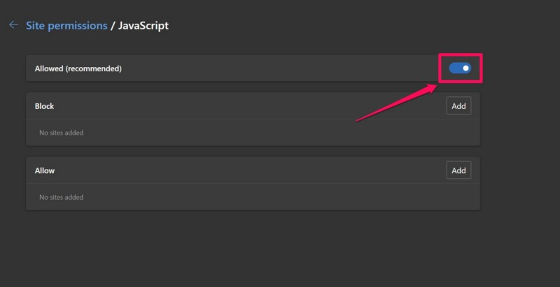 Yapıldıktan sonra, tarayıcıdaki Ayarlar sekmesini kapatın ve “Uygulama Hatası: İstemci tarafı istisnası oluştu” hatasını oluşturan sayfayı yeniden yükleyin. Yeniden yüklendikten sonra, web sayfasının düzgün yüklenip yüklenmediğini kontrol edin. Eğer öyleyse, tarayıcıdaki JavaScript Ayarları sayfasını yeniden açabilir ve ayarı yeniden etkinleştirebilirsiniz.