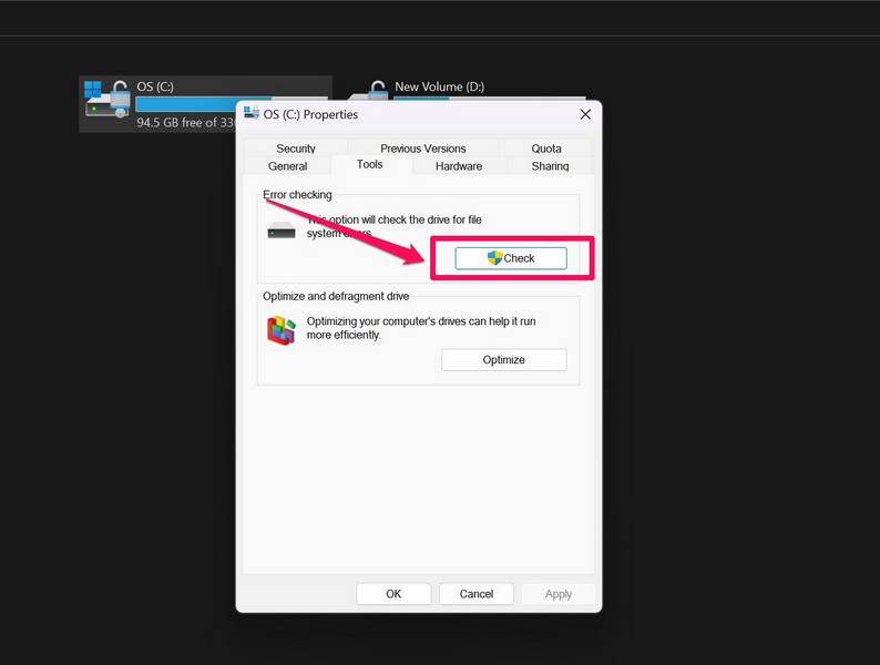 Şimdi, Windows 11 sayısında çalışmayan yedeklemeyi düzeltmek için yapabileceğiniz son şeylerden biri, hatalar için sisteminizdeki C sürücüsünün kapsamlı bir kontrolünü çalıştırmaktır. Bunu yapmak için: